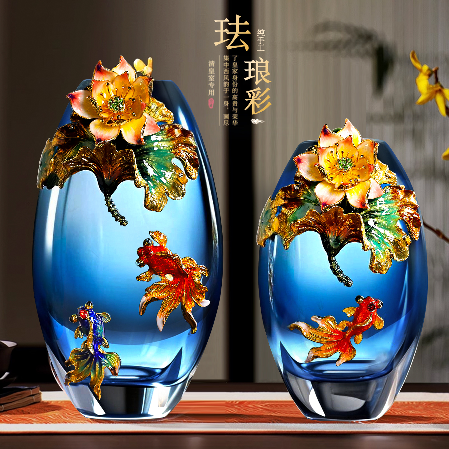 新中式 饰工艺品乔迁礼物 珐琅彩玻璃花瓶高端摆件客厅轻奢高级感装