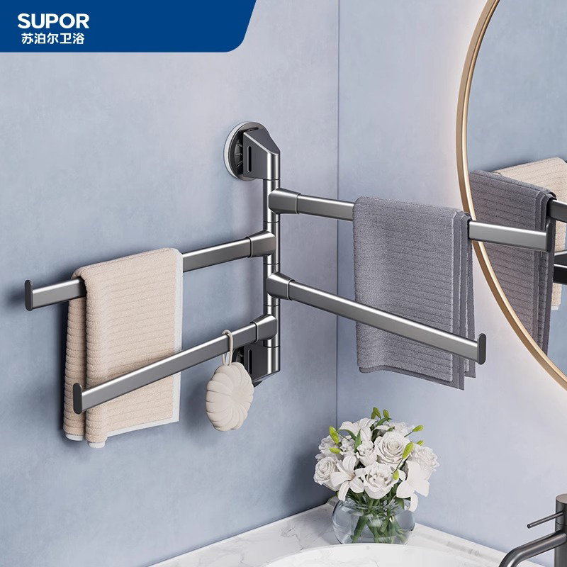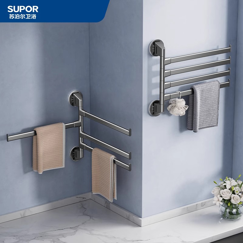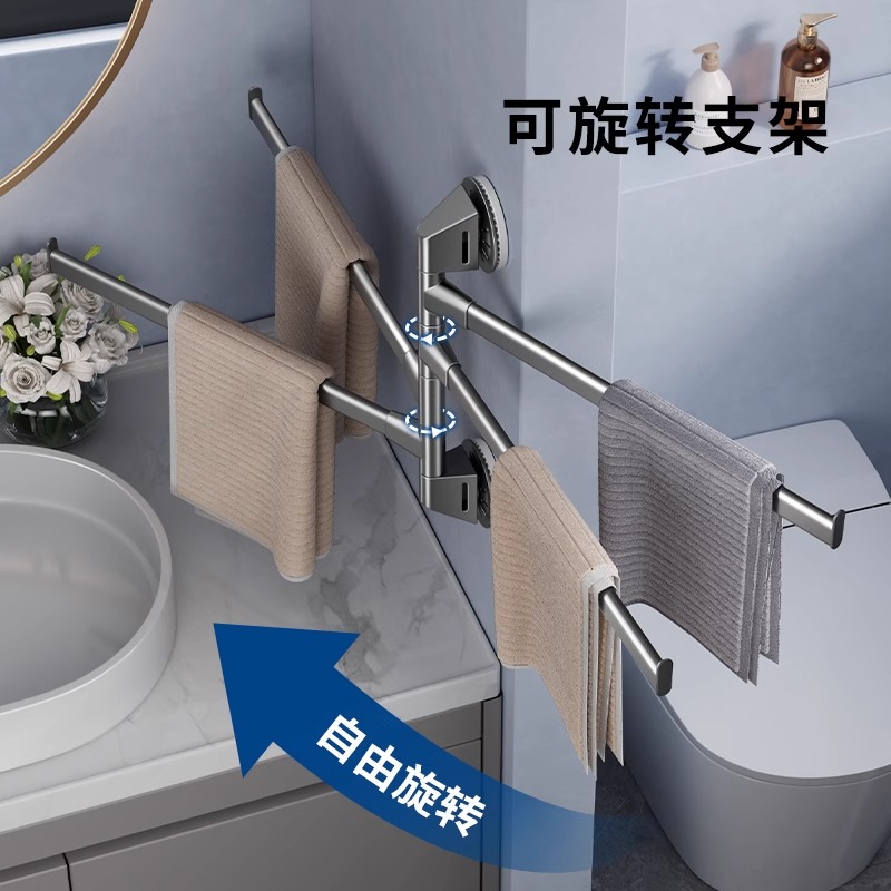 苏泊尔旋转毛巾架浴室免打孔壁挂吸盘毛巾杆卫生间转角收纳置物架