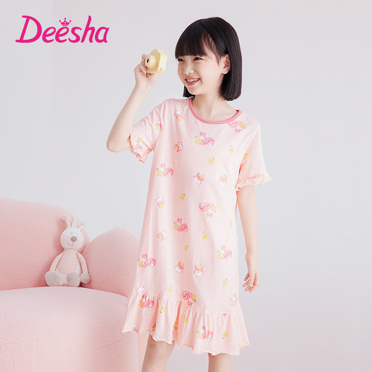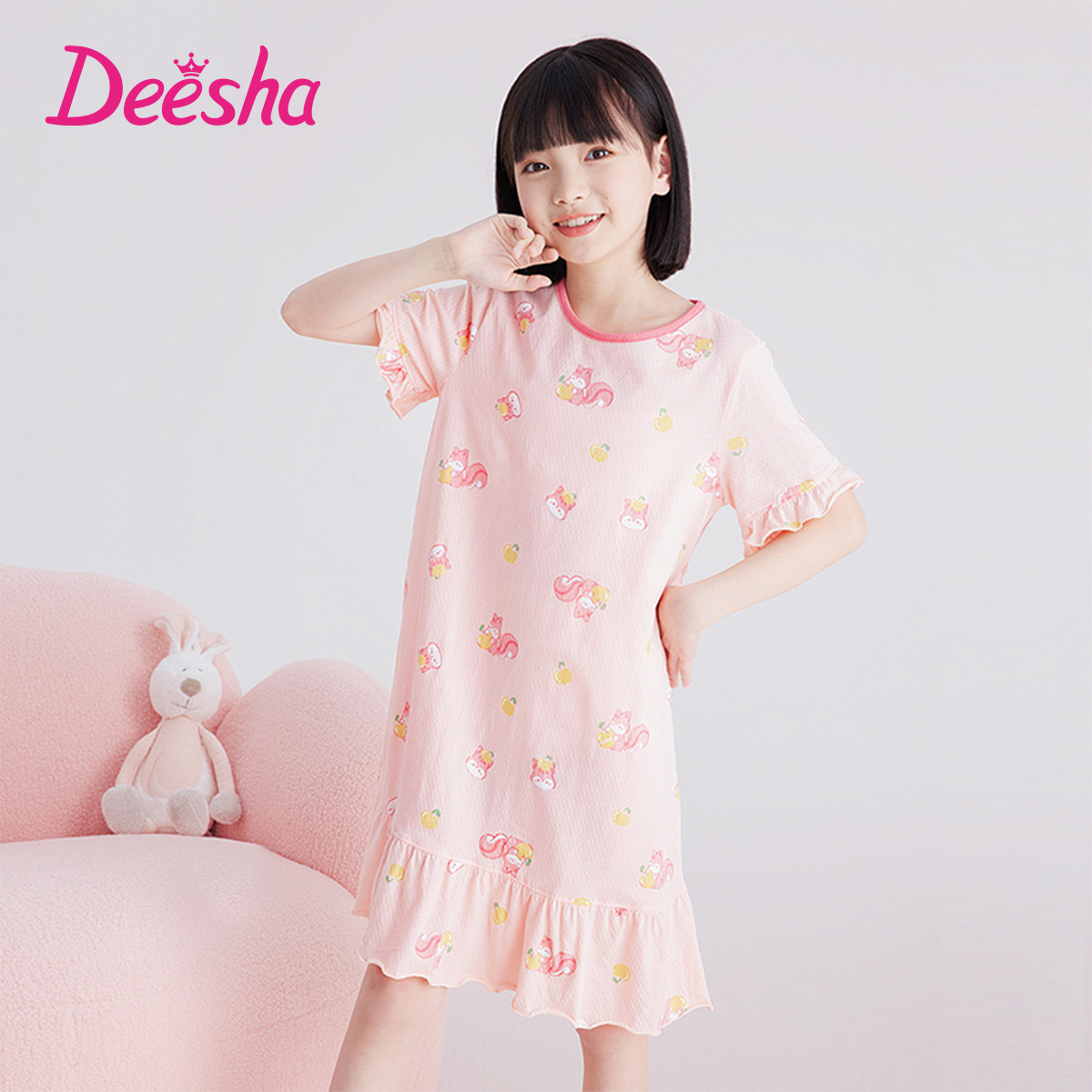 儿童全棉宝宝公主抑菌睡衣 女孩新款 笛莎女童睡裙a类纯棉薄款 夏季