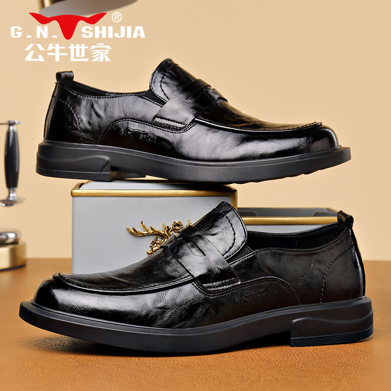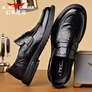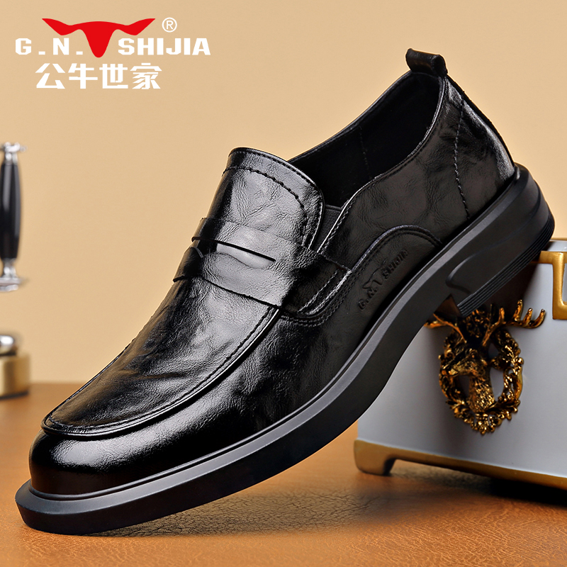公务一脚蹬软底乐福鞋 公牛世家豆豆鞋 男士 真皮商务休闲皮鞋 男秋季