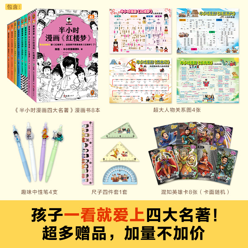 半小时漫画四大名著礼盒定制版 8册 正版 混知严选 正品 随身学随时学 多赠品 中小学名著入门 红楼梦西游记三国演义水浒传