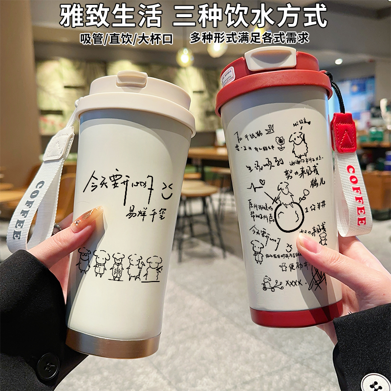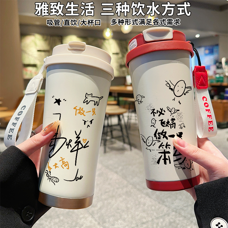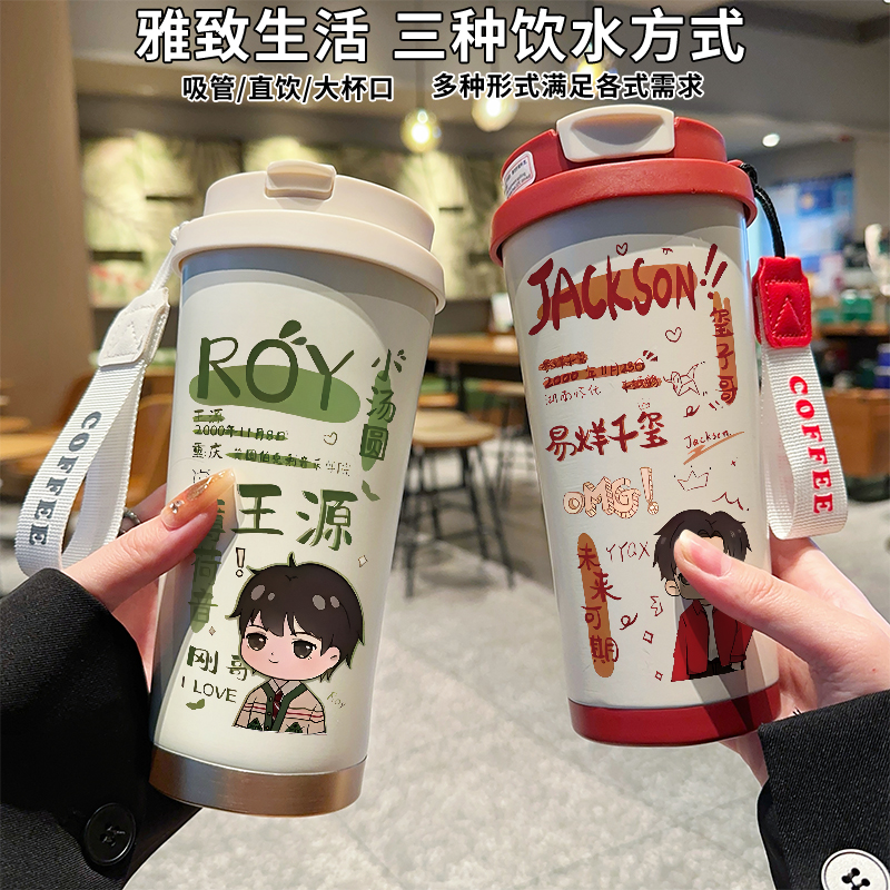 易烊千玺周边同款 保温杯双饮口吸管水杯子便携高颜值女生上学保冷