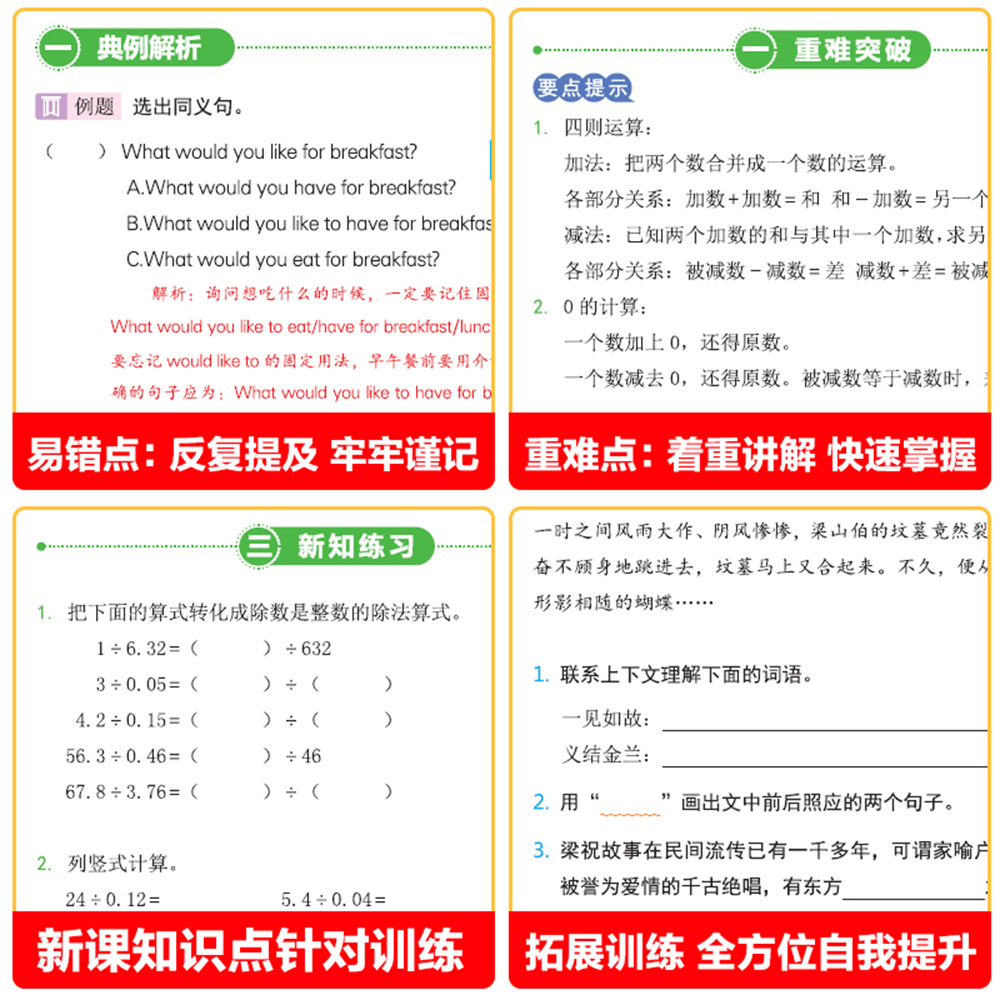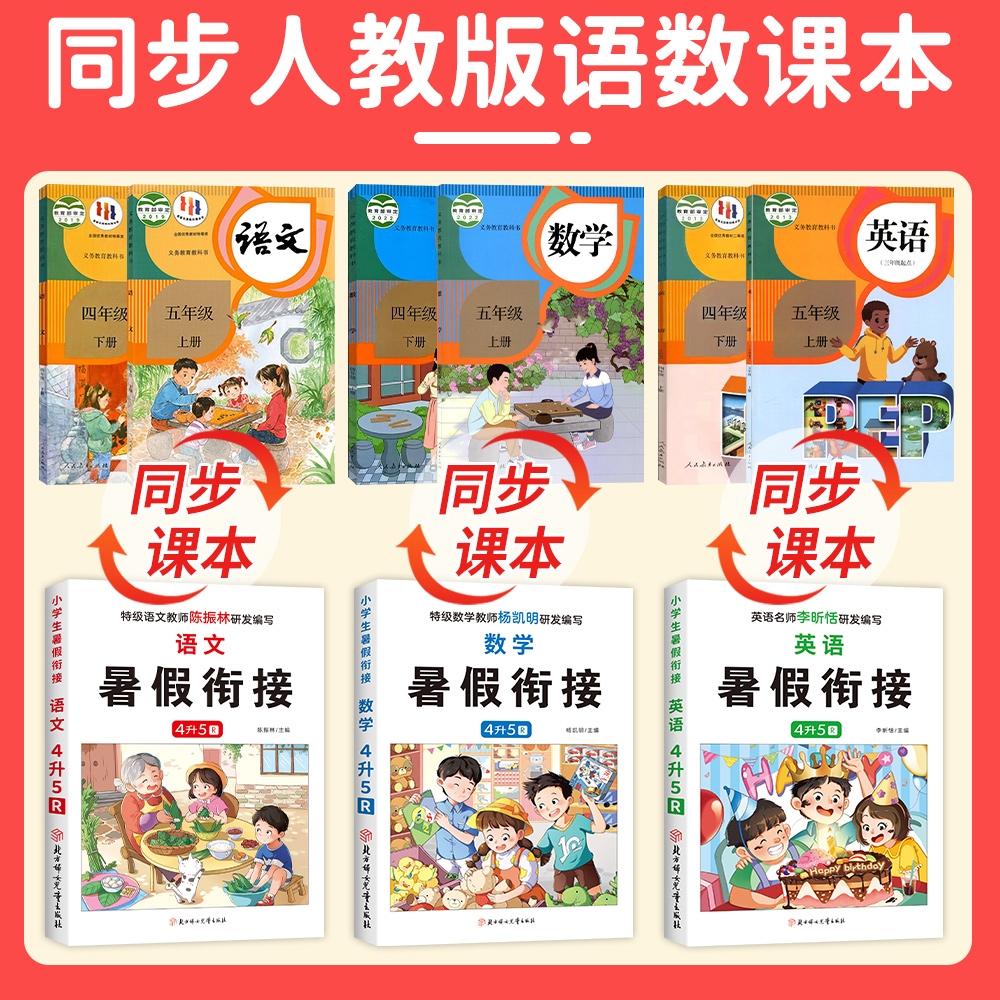 四年级下册暑假作业小学生升五年级语文数学英语RJ人教版 四升五暑假衔接预复习一本通4升5语数英专项训练同步练习册阅读课堂应用题