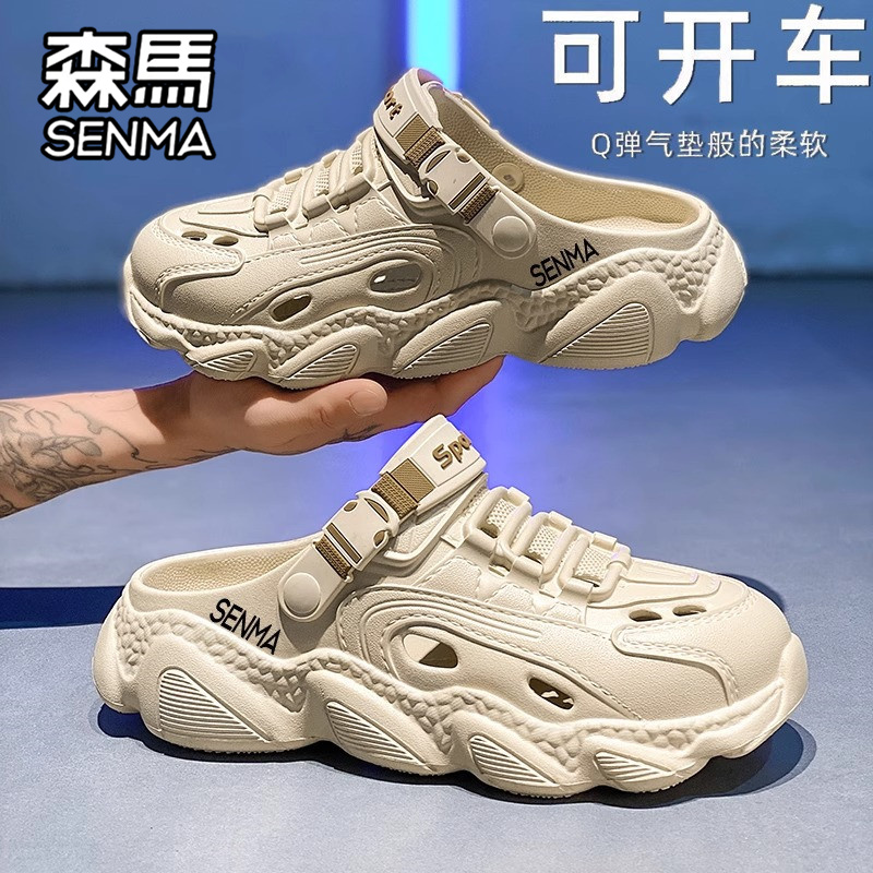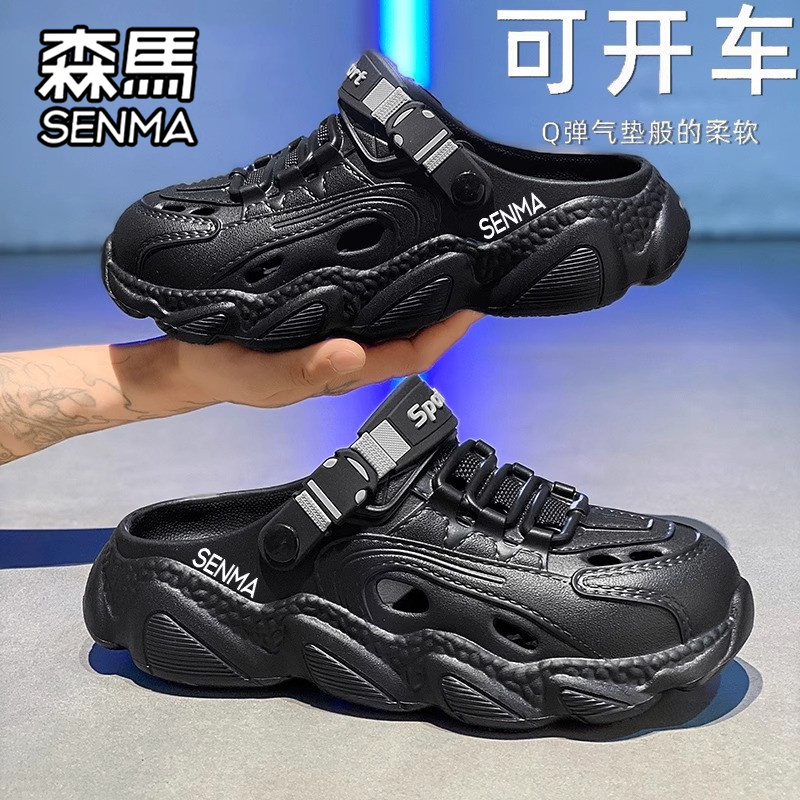 踩屎感软底海边沙滩凉鞋 森马洞洞鞋 外穿防滑防臭包头拖鞋 夏季 男士