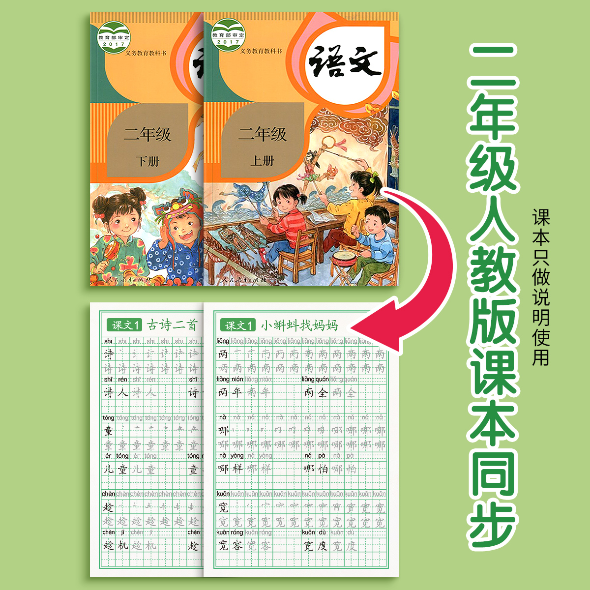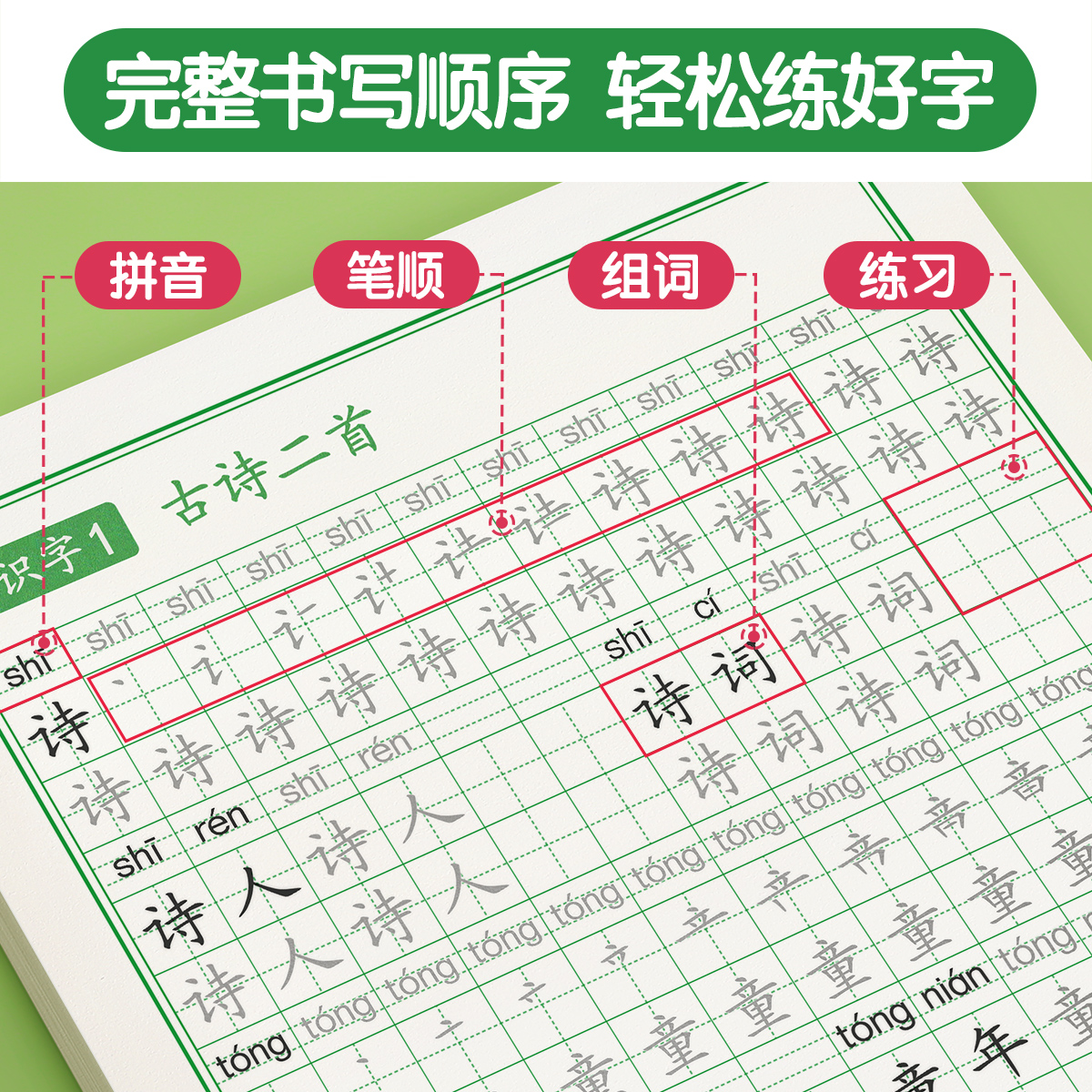 二年级上册练字帖下册小学生专用语文暑假作业拼音组词教材同步练字字帖人教版 天天练儿童笔画笔顺一升二暑假衔接每日一练看图新版