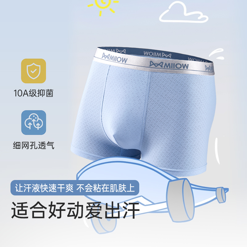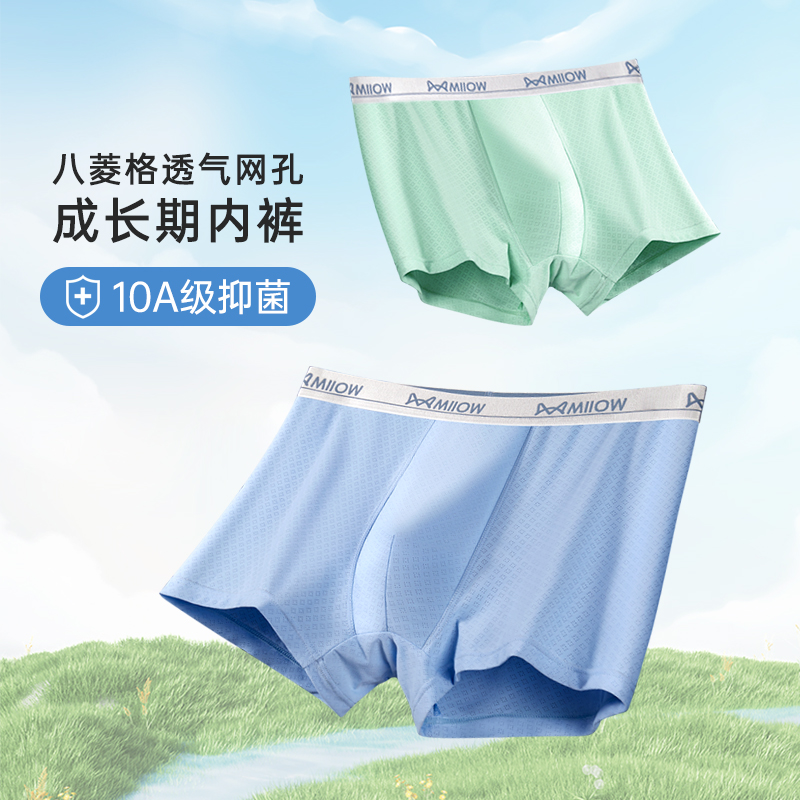男生四角平角短裤 猫人青少年内裤 男童发育期初高中学生冰丝夏薄款