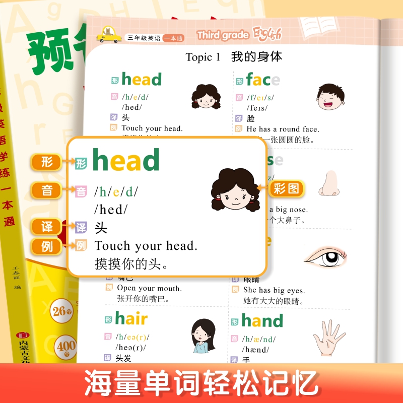 预备三年级英语学练一本通人教版 零基础入门预备教材二升三英语衔接每日一练二年级升三年级英语启蒙暑假英语26个英文字母自然拼读