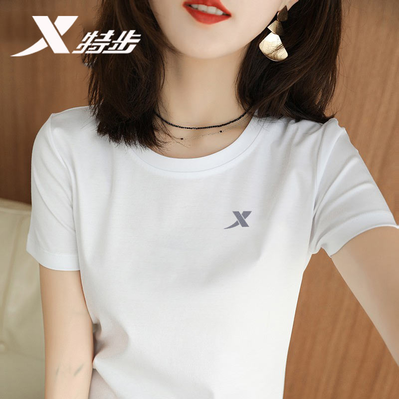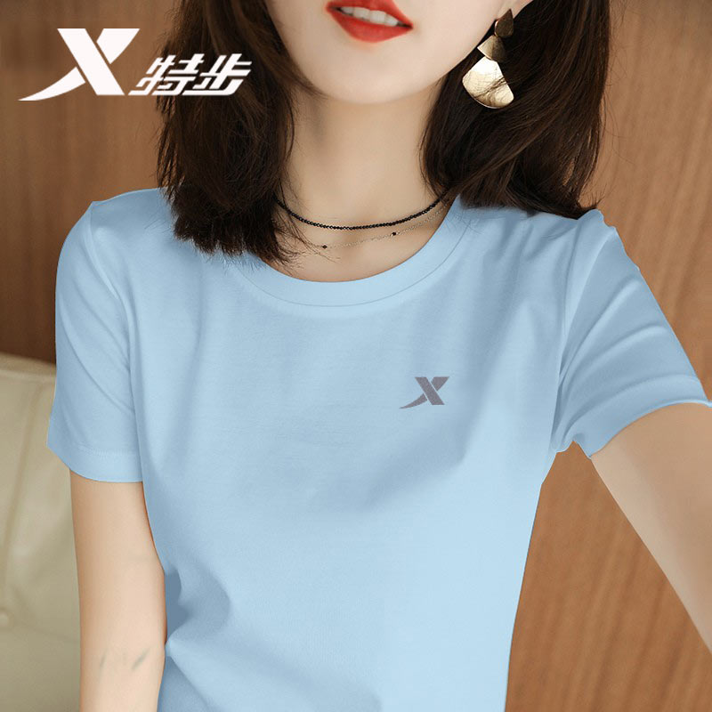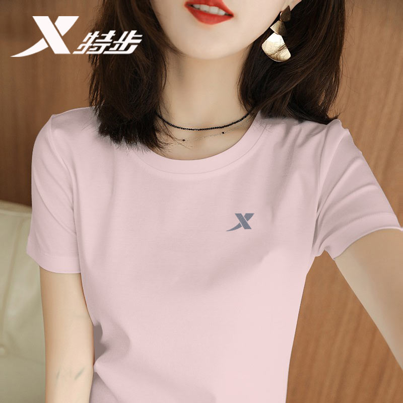 女装 特步短袖 运动上衣半袖 透气体恤跑步休闲服薄款 t恤女2025新款