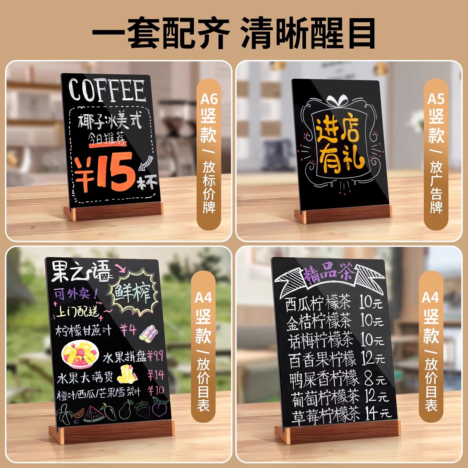 摆摊展示牌手写菜单小黑板价格桌牌立牌亚克力台卡A4桌面广告牌餐牌菜牌台牌立式 奶茶店价目表可擦diy标价牌