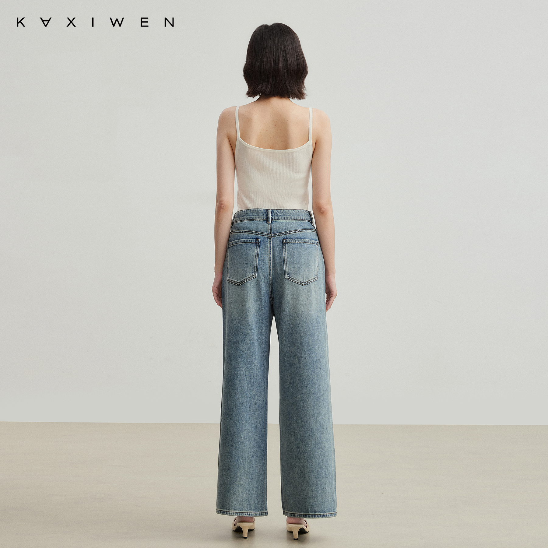 复古做旧高腰长裤 佧茜文气质烫钻牛仔直筒裤 时尚 新款 女 2025秋季