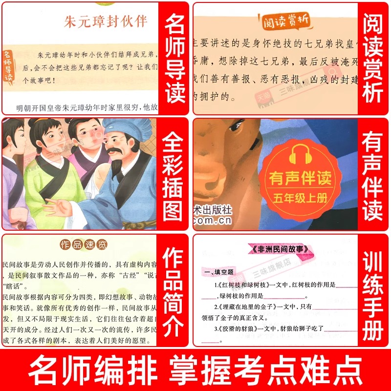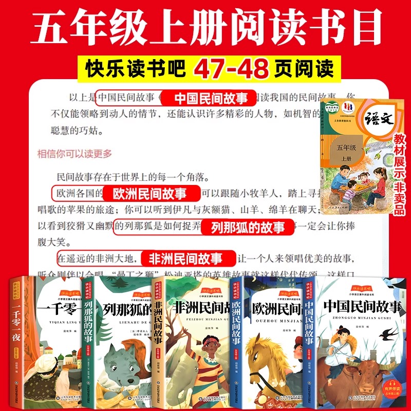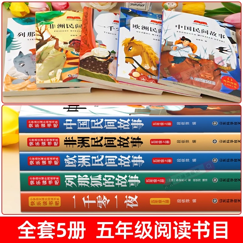 中国民间故事五年级上册必读 经典 课外书正版 故事一千零一夜推荐 书目暑假阅读书籍 快乐读书吧田螺姑娘精选欧洲非洲列那狐 全5册