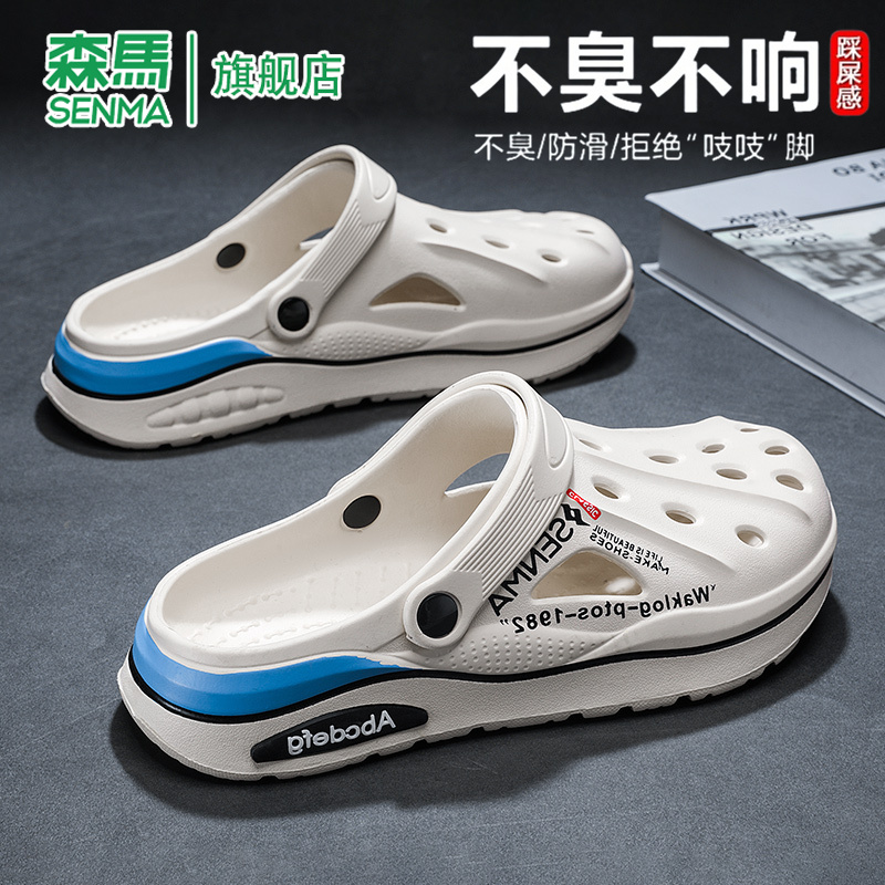 男款 凉鞋 夏季 海边运动大码 踩屎感外穿防滑两用包头拖鞋 森马洞洞鞋