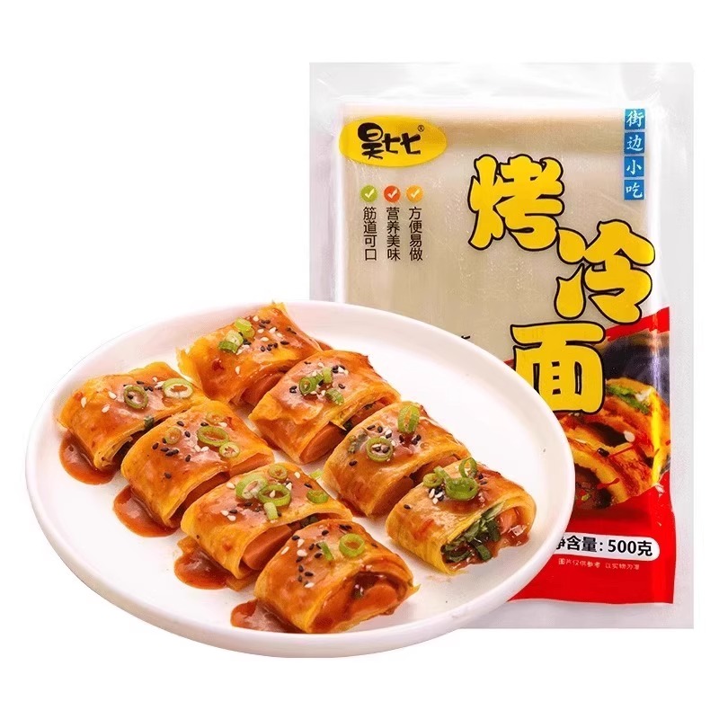 东北烤冷面家庭装 大面皮送专用酱料 速食小吃正宗烤冷面片真空袋装