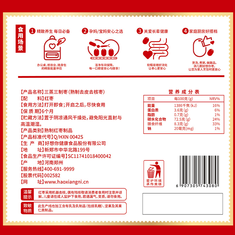 好想你 三蒸三制枣新疆红枣去皮去核枣三蒸三晒枣零食0添加食有道