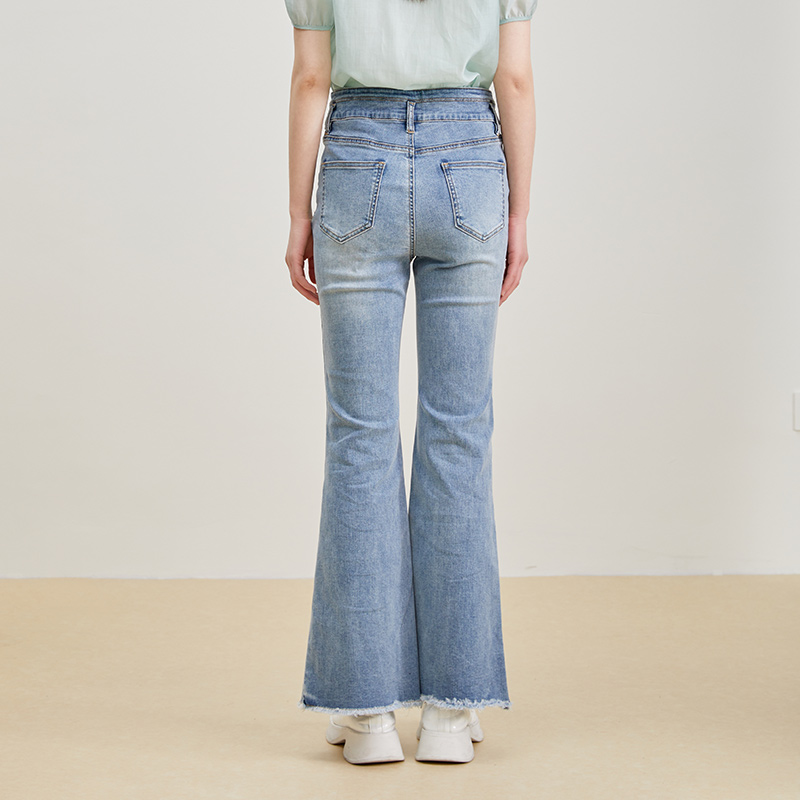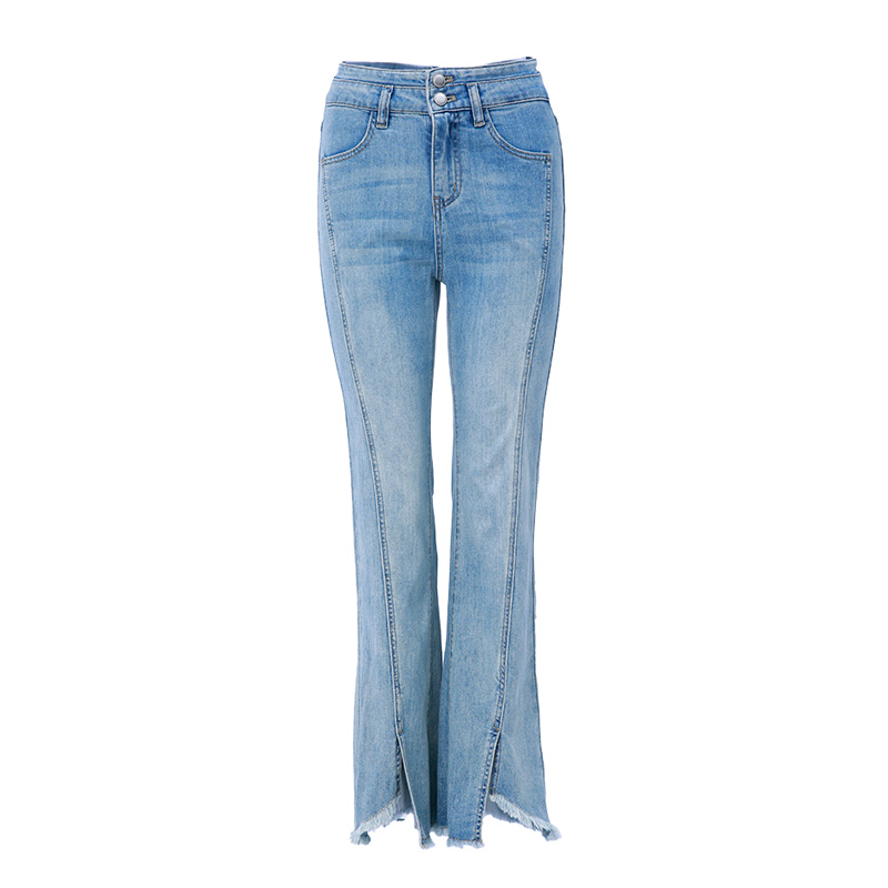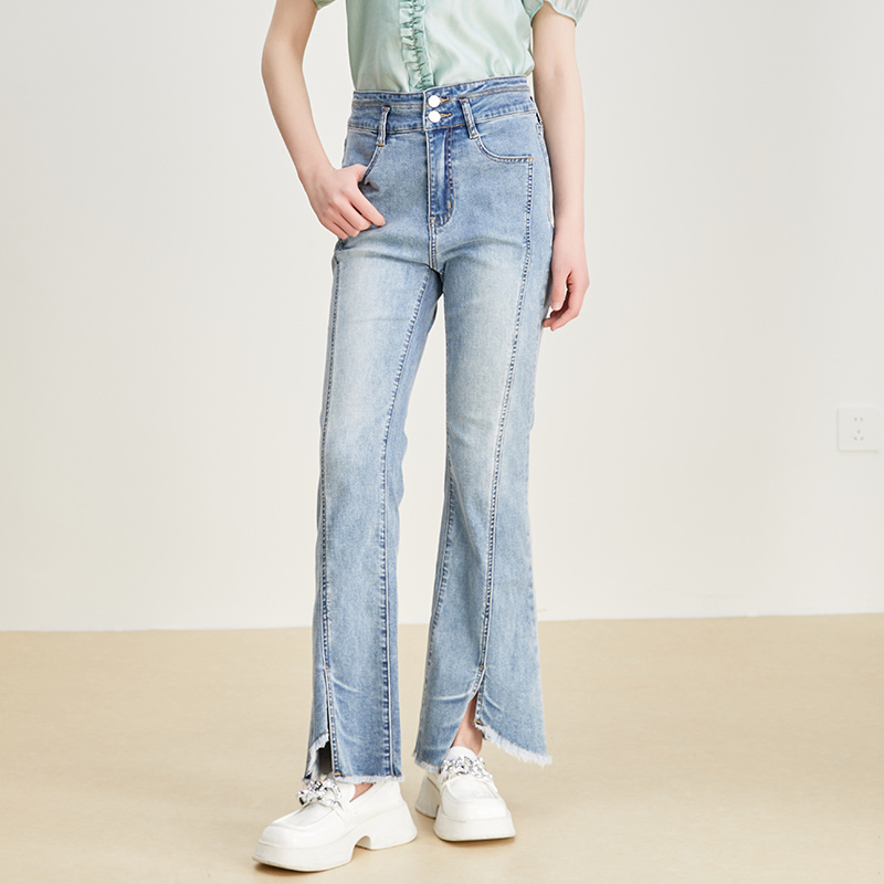 女开叉裤 SOMSOM 浅蓝色高腰微喇牛仔裤 新款 脚仔日常通勤 索玛夏季