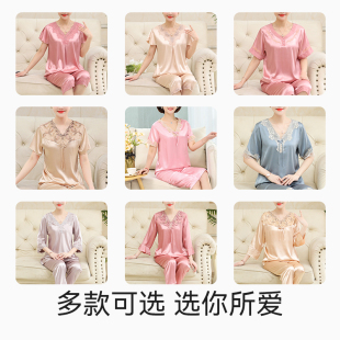 家居服套装 妈妈睡衣女式 中老年奶奶短袖 冰丝宽松透气大码 夏天新款