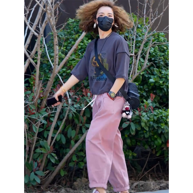 洋气宽松印花T恤上衣纯色百搭长裤 2025夏季 时尚 女士休闲套装 新款