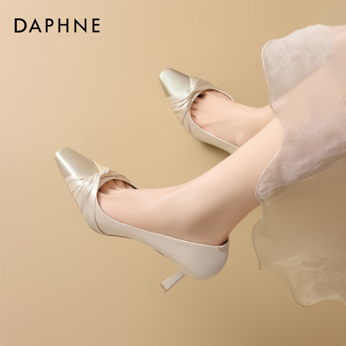 新娘鞋 白色婚鞋 子日常 女气质不累脚2025新款 达芙妮缎面裸色高跟鞋