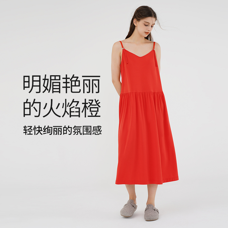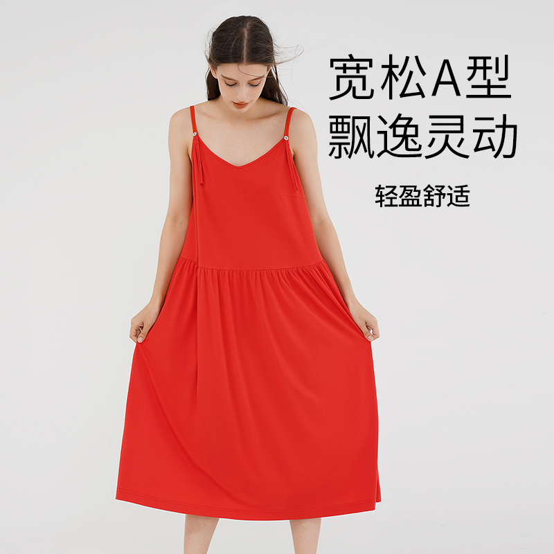 猫人棉绸睡裙女带胸垫夏季 莫代尔家居服 凉感简约甜美冰丝睡衣短袖
