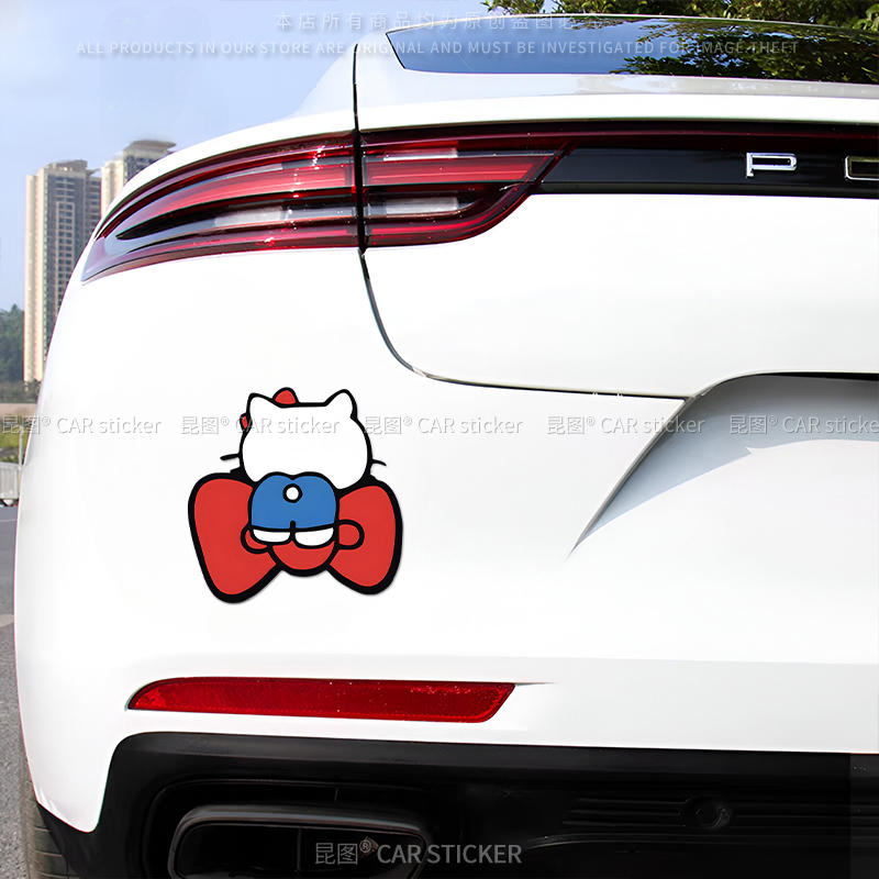 Hellokitty汽车贴纸可爱卡通电动车改装 饰行李箱车身遮挡刮痕贴画