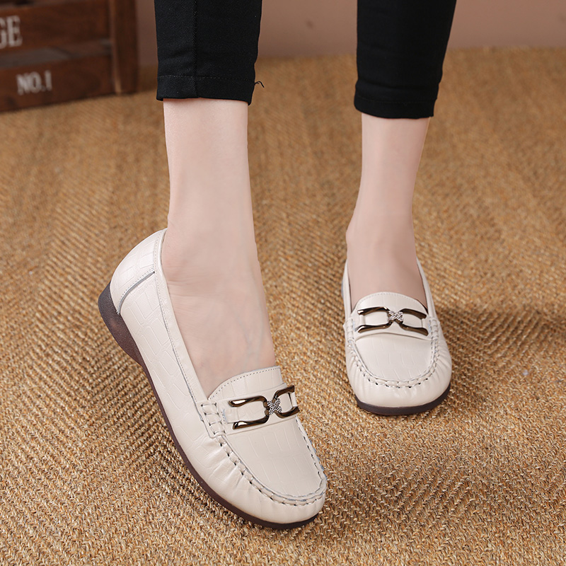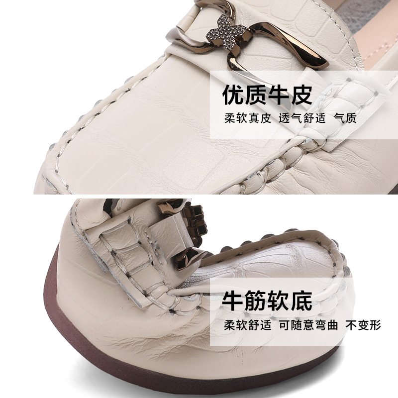 牛筋软底浅口中老年妈妈鞋 新款 春夏季 女单鞋 真皮大码 豆豆鞋 乐福鞋