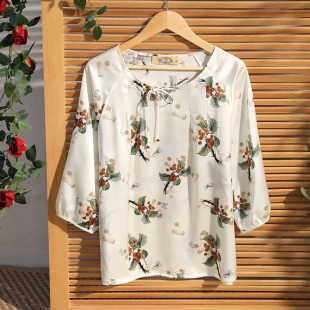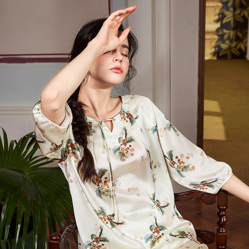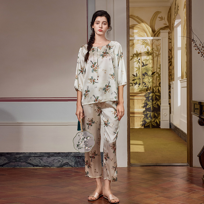 中国风丝绸家居服 女春夏桑蚕丝新中式 美标七分袖 重磅真丝睡衣套装