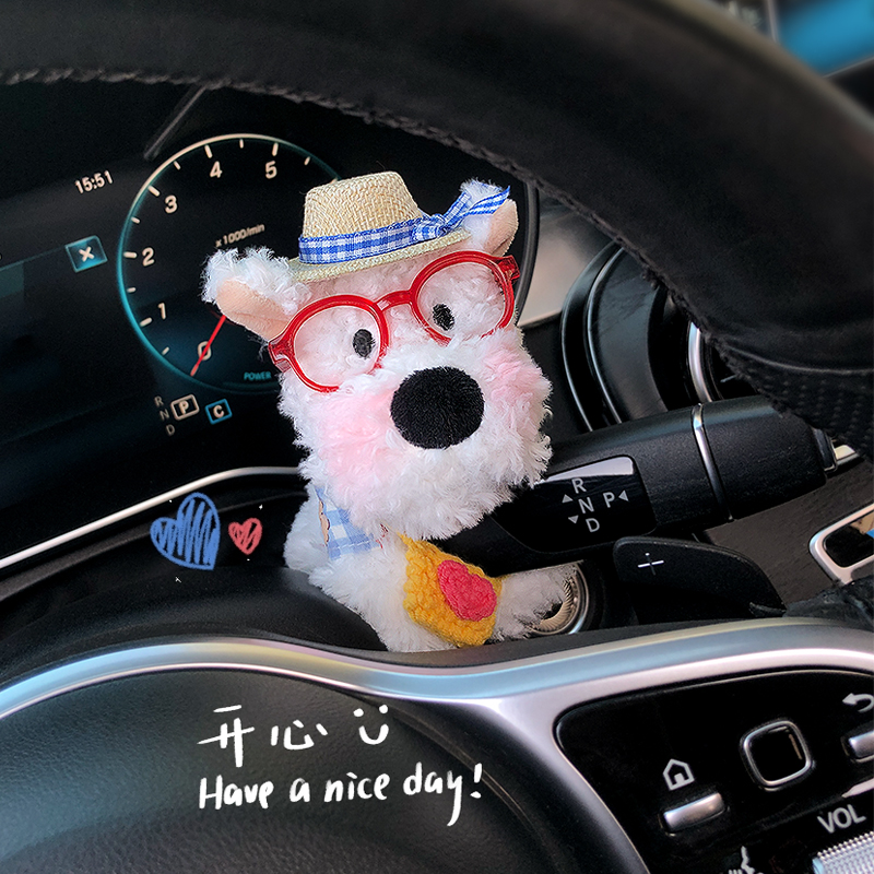 春游草帽西高地汽车怀挡装 饰车内饰品摆件车载玩偶雨刮器转向灯女