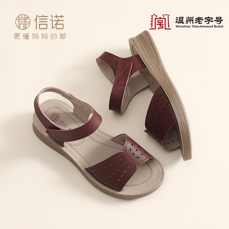 真皮防滑中老年爸爸拖鞋 牛皮休闲外穿沙滩鞋 男2025夏季 老人头凉鞋