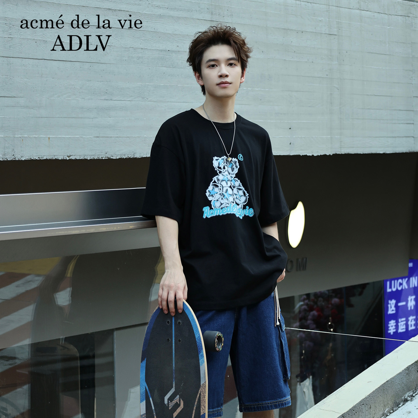 上衣夏季 中性风男女同款 T恤2025年新款 ADLVhoshi星星小熊印花短袖