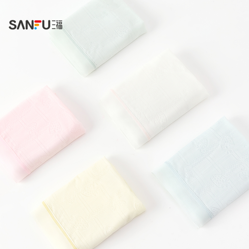 女士桑蚕丝底档不夹档平角裤 爱美丽3条装 10A抗菌棉感印花中腰内裤