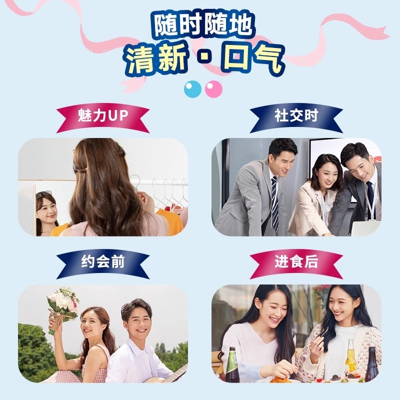 日本进口小林制药清新口气爆珠糖接吻无糖薄荷口香糖30粒 自营