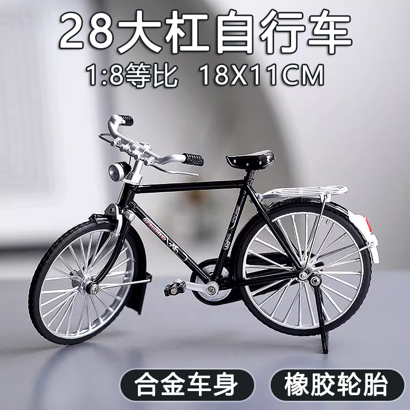 怀旧二八大杠合金车模摆件 28单车经典 自行车模型拼装 手动diy组装