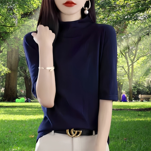 春秋大码 胖mm宽松白色毛衣五分袖 女装 针织衫 T恤上衣潮 中袖 打底衫