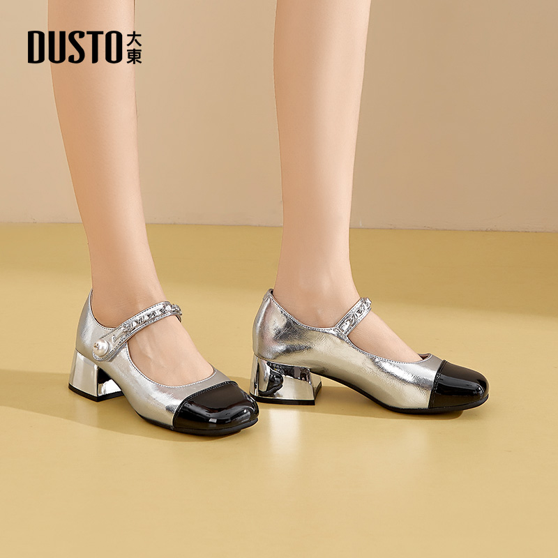 配裙子粗跟浅口单鞋 大东玛丽珍鞋 高跟小皮鞋 2025春夏新款 0108 女鞋