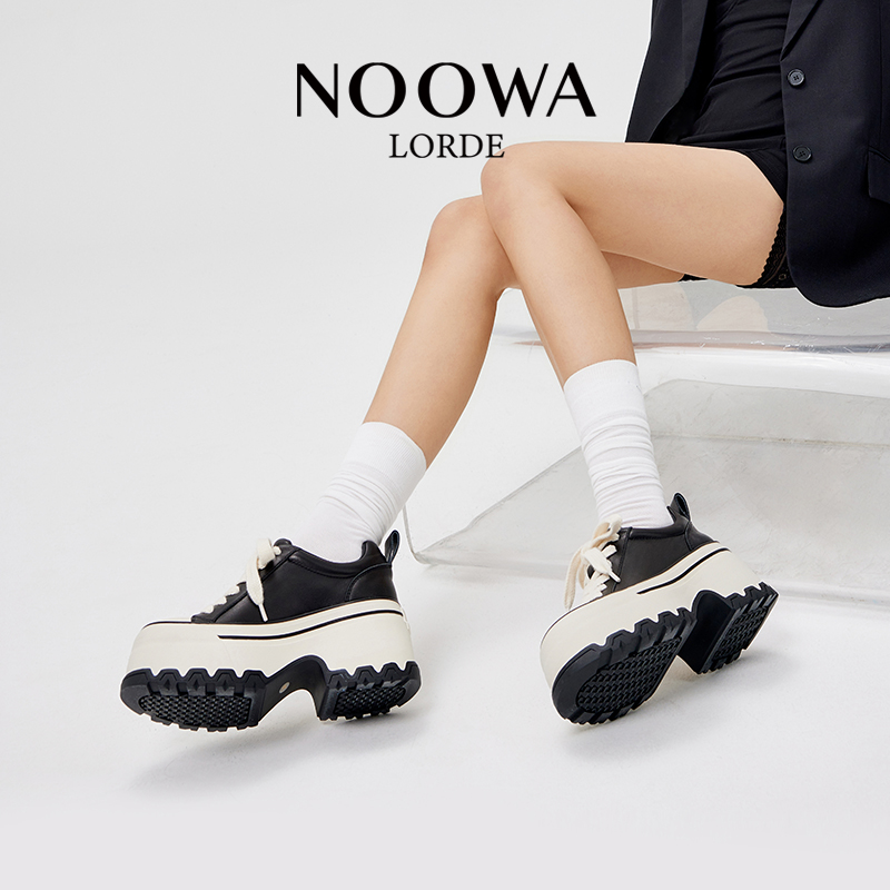 摇摇松糕系带增高0708 真皮休闲百搭小白鞋 吉祥鸟超轻女鞋 2025新款