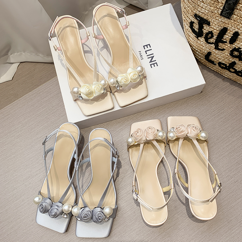 细跟山茶花高跟鞋 羊皮版 2025夏季 配长裙仙女鞋 温柔 女士夏天凉鞋