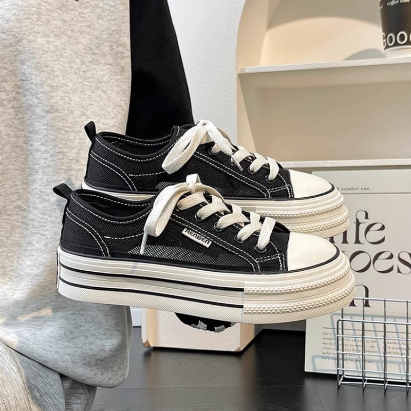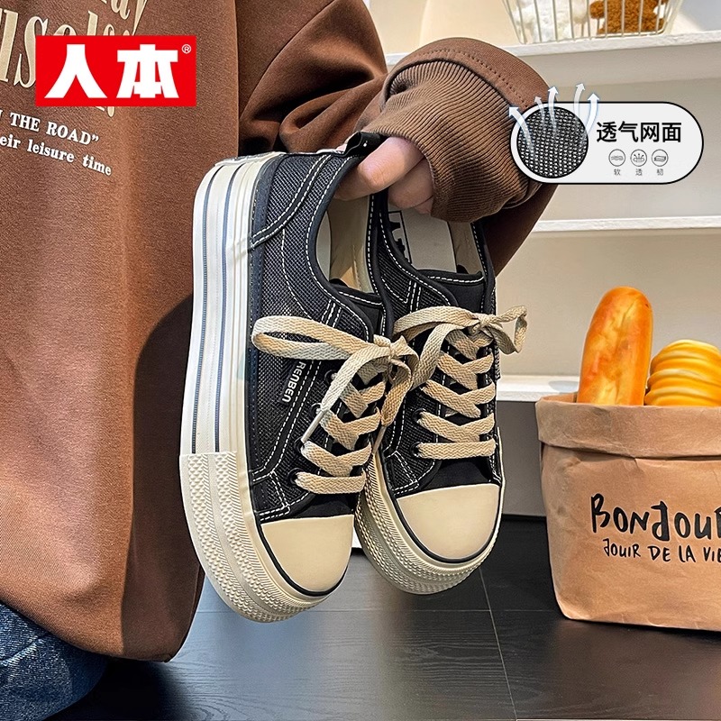 ins轻薄透气休闲运动板鞋 小白鞋 女2025秋新款 人本大头厚底帆布鞋