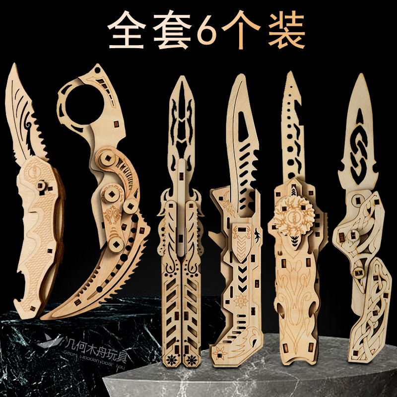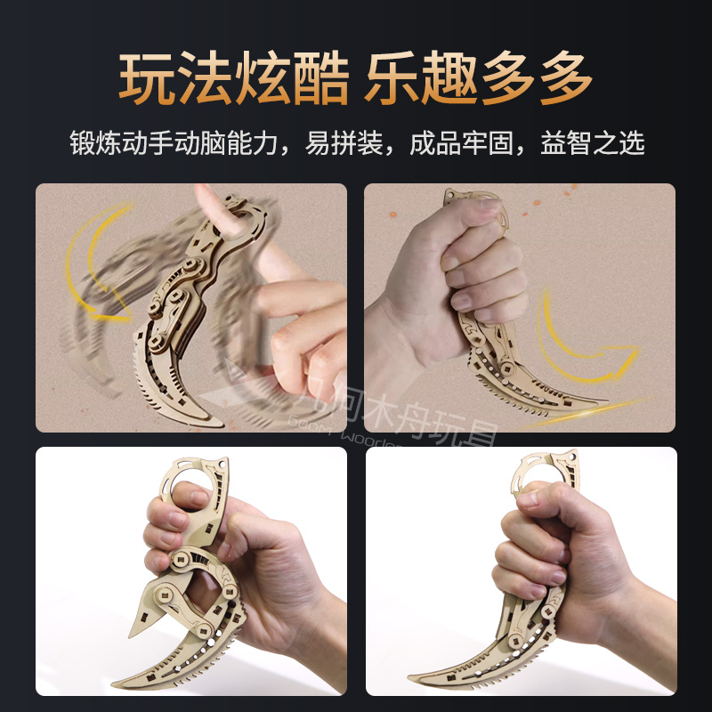 木制拼装 模型 蝴蝶折叠刀CSgo变形军工刀diy手工立体拼图木质拼装