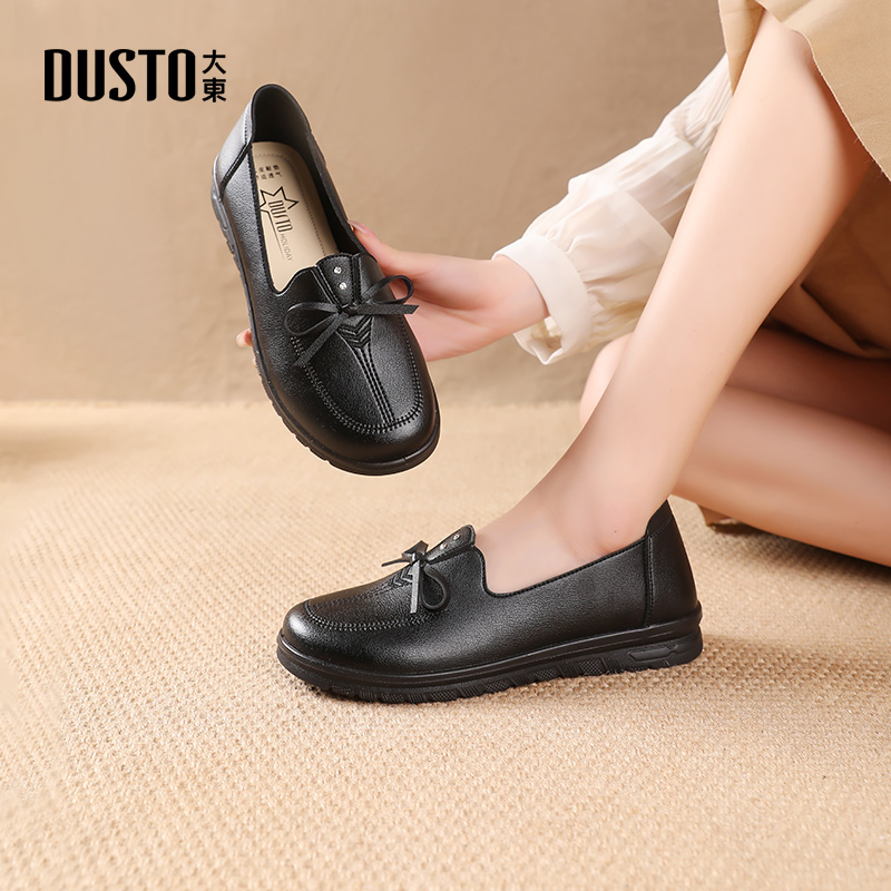 2025秋季 一脚蹬软底浅口鞋 新款 舒适平底蝴蝶结单鞋 时尚 大东妈妈鞋