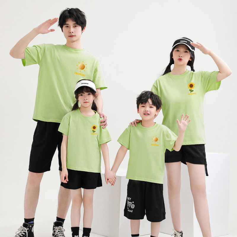 向日葵短袖 家庭装 一家三口四口全家装 休闲旅游装 夏季 趣味亲子装