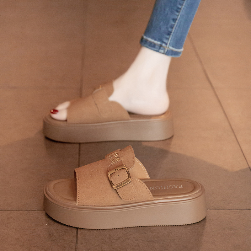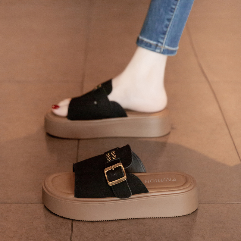 高级感超火一字拖沙滩凉鞋 女夏外穿2025新款 潮 厚底增高凉拖鞋 法式
