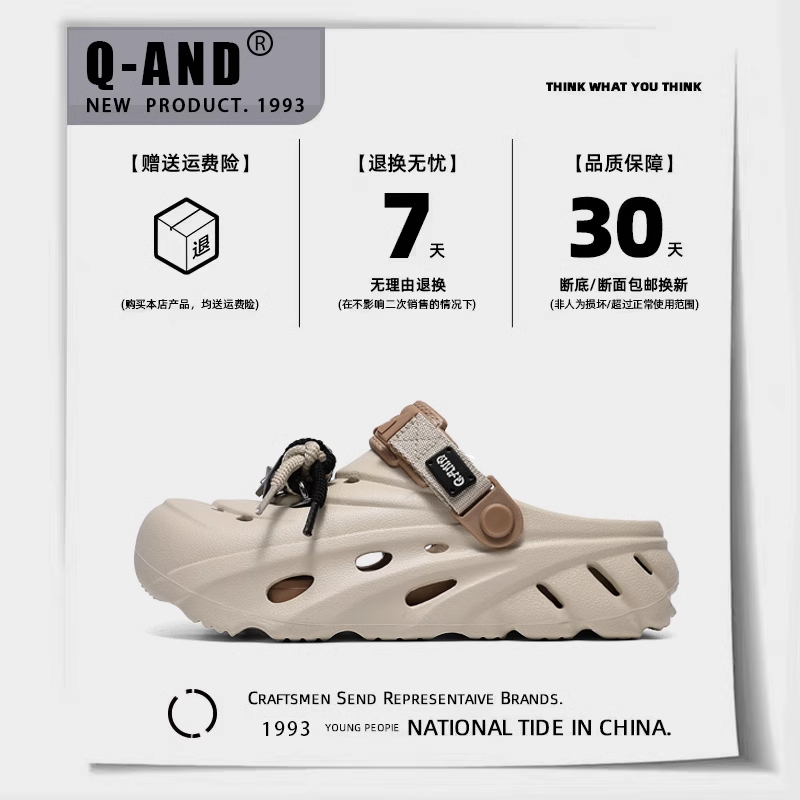 户外防滑沙滩鞋 朴西奶酪情侣厚底踩屎感洞洞鞋 包头拖鞋 夏季 男 女款