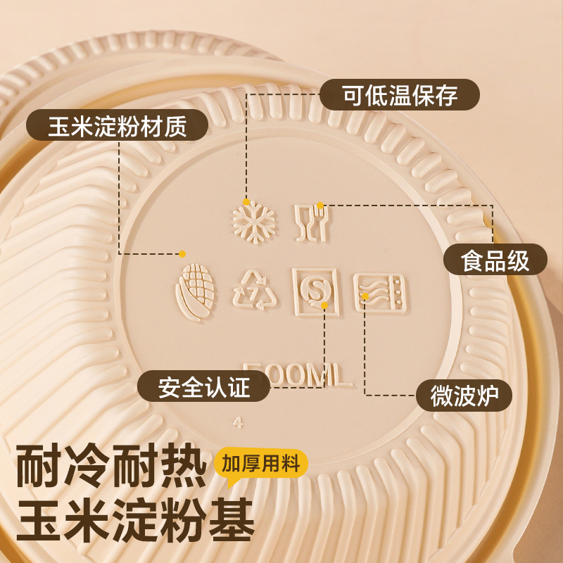 美宝琳一次性打包餐盒食品级玉米淀粉可微波加热可降解环保餐具