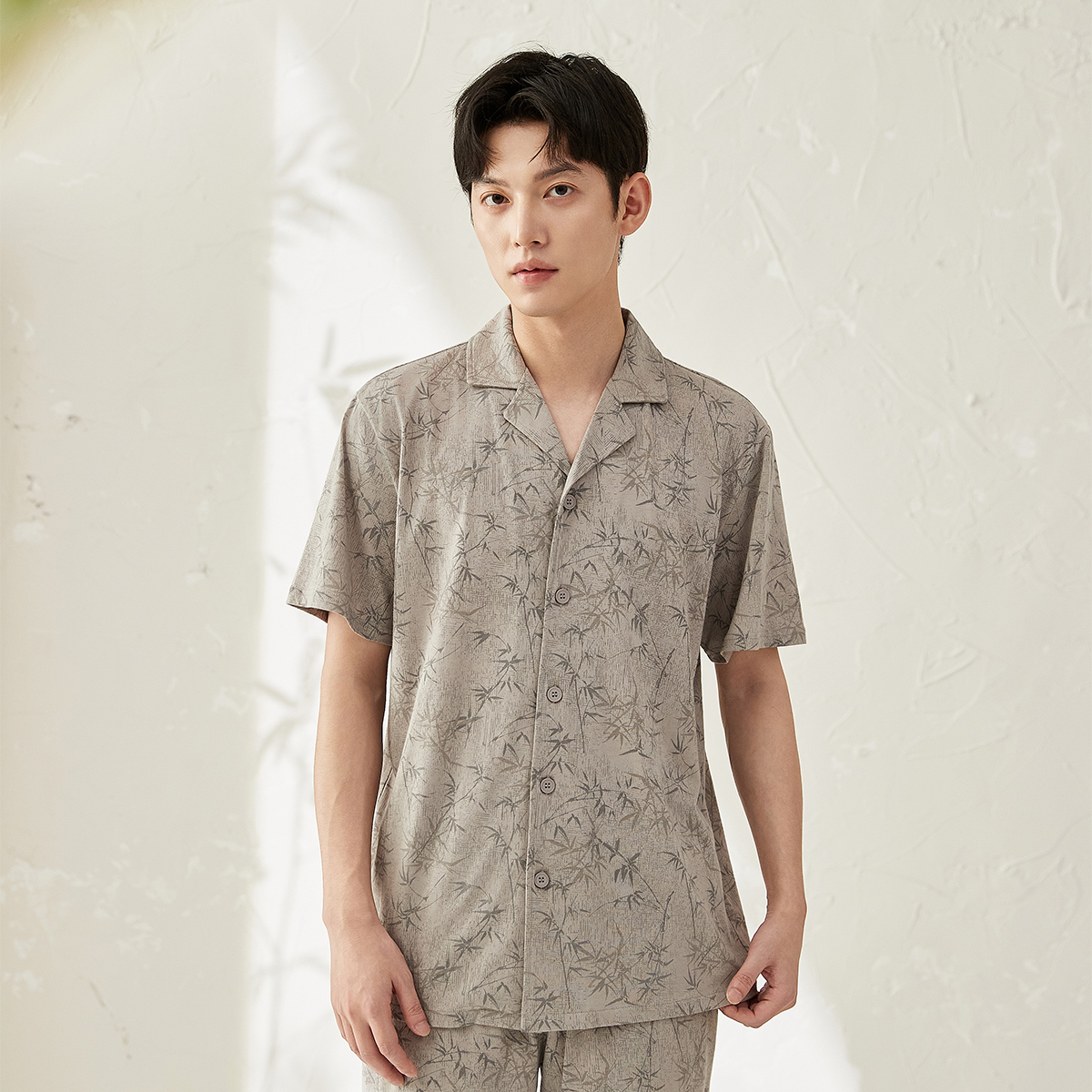 纯棉春夏季 男士 短袖 可外穿印花家居服套装 长裤 顶瓜瓜睡衣男款