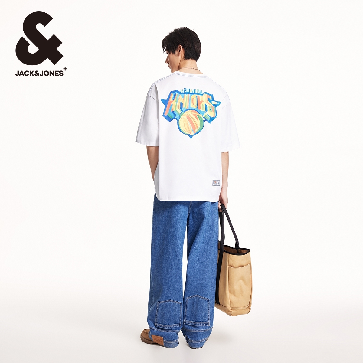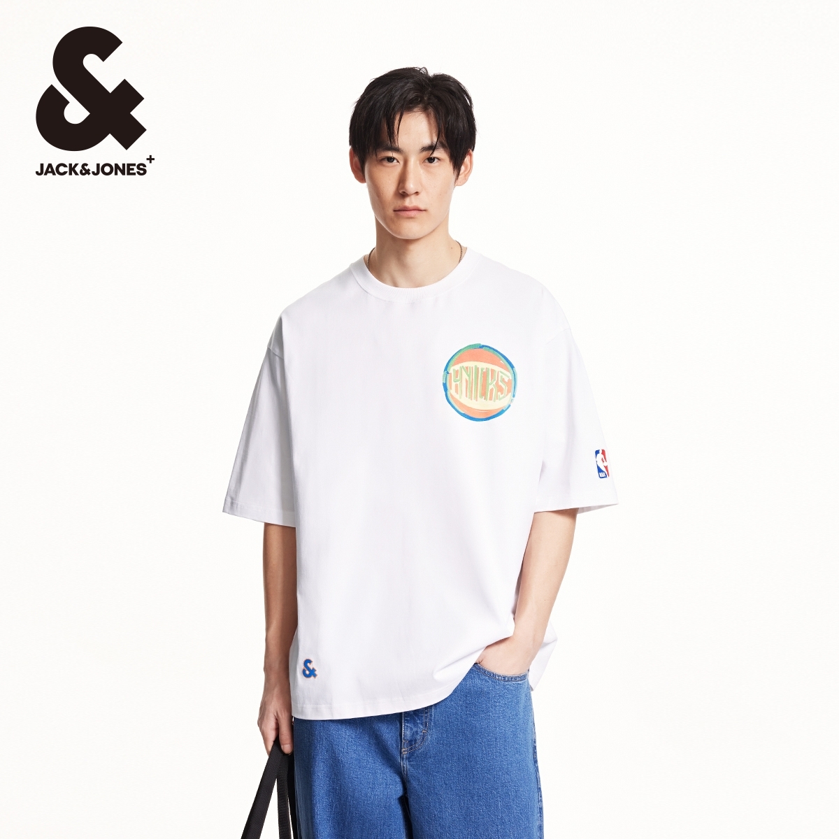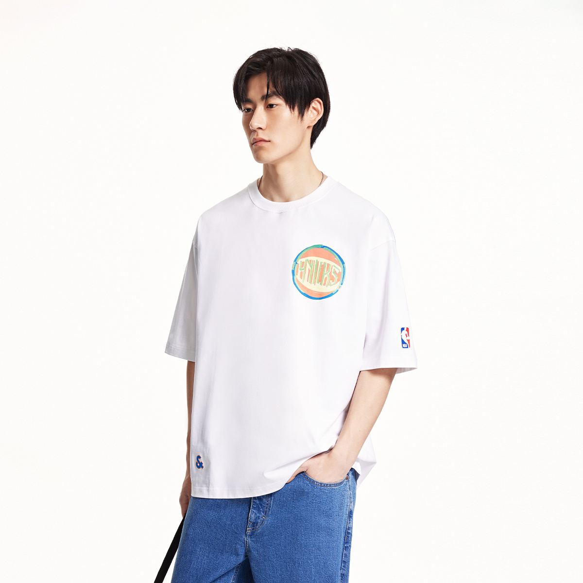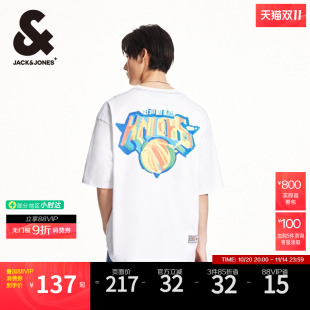 T恤男装 杰克琼斯NBA联名款 纽约尼克斯队篮球涂鸦纯棉短袖 新款 秋季