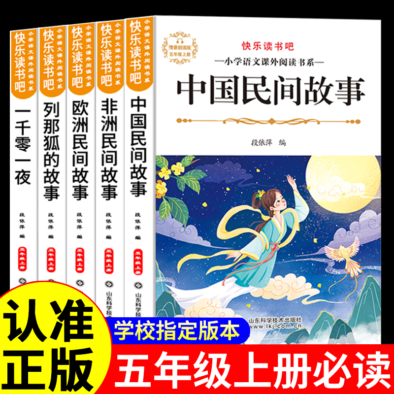 学校经典 故事田螺姑娘精选书目五上阅读书籍人教版 肚子 课外书欧洲非洲列那狐 中国民间故事快乐读书吧五上册全套5册必读正版