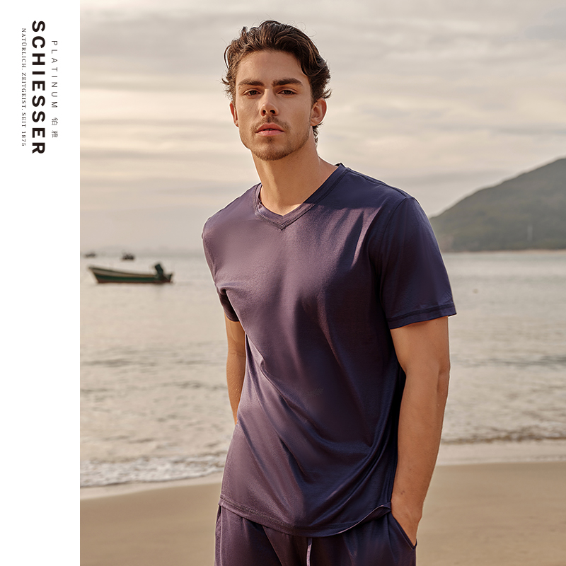 短袖 舒雅铂雅25夏季 60S莱赛尔丝光棉铜氨凉感大码 男士 上衣T恤 新品