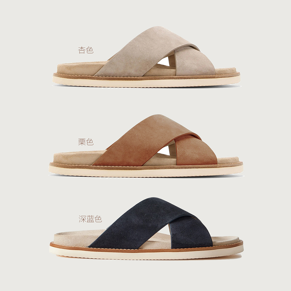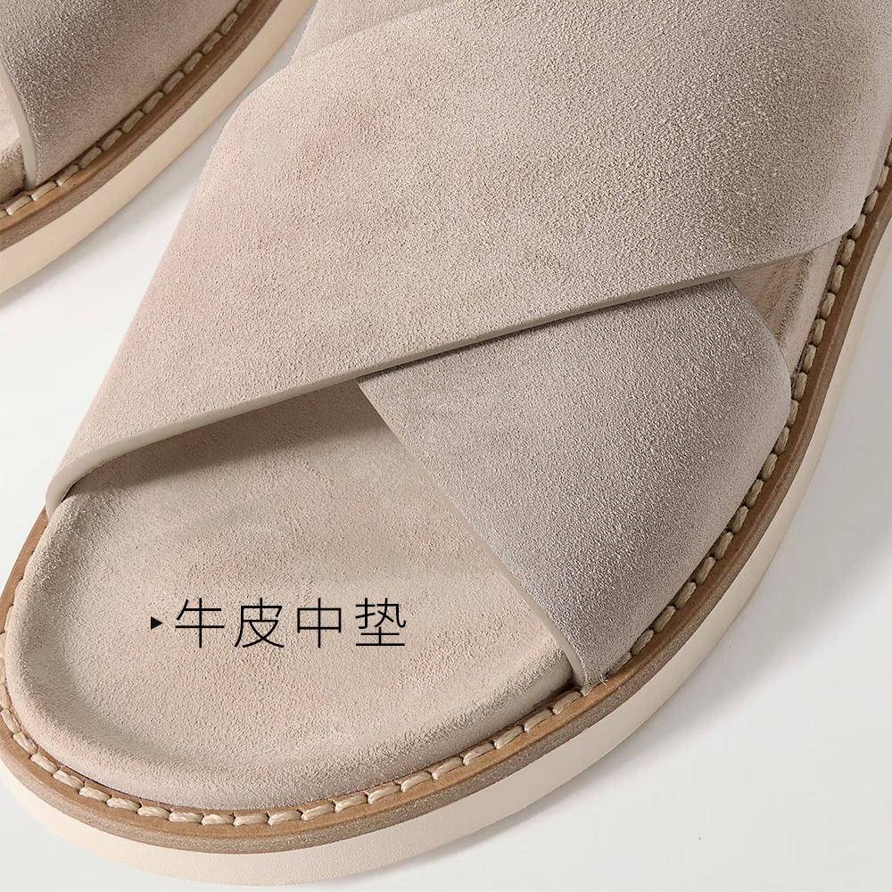凉拖鞋 潮真皮增高沙滩鞋 夏季 休闲拖鞋 交叉一字拖 透气外穿时尚 男士