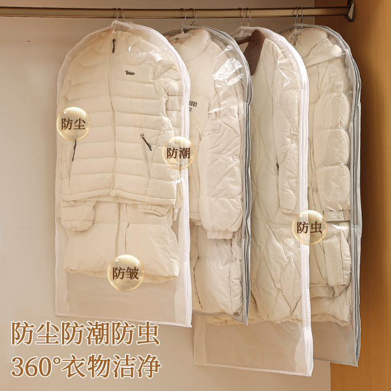衣服防尘罩全封闭拉链款 透明 羽绒服专用压缩防尘袋子防潮防霉长款