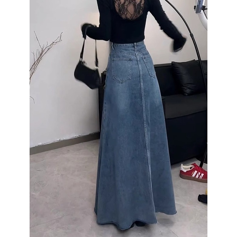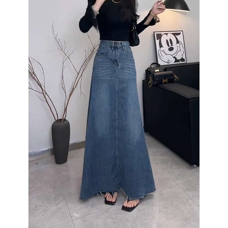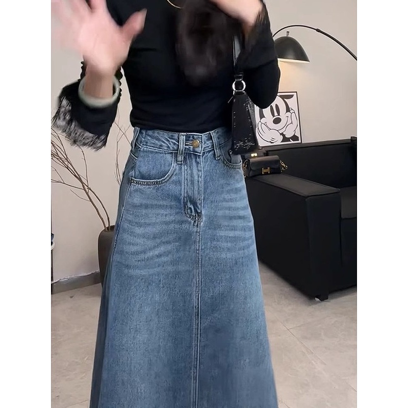 A字裙百搭大摆裙子女 高腰显瘦牛仔半身裙女中长款 2025春夏季 新款